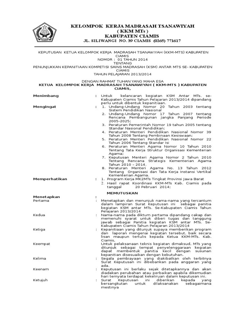 Kepala madrasah aliyah negeri 4 jakarta. Mencoba berbagi terkait contoh sk (surat keputusan) untuk kompetisi sains madrasah online (ksmo) pada tingkat satua pendidikan madrasah. Contoh sk penetapan pengelola pembimbing dan peserta bimbingan kompetisi sains madrasah (ksm) terbaru. Tentang penunjukkan pembimbingan kompetisi sains madrasah online (ksmo) tingkat provinsi nama madrasah Maka dipandang perlu untuk membentuk dewan .